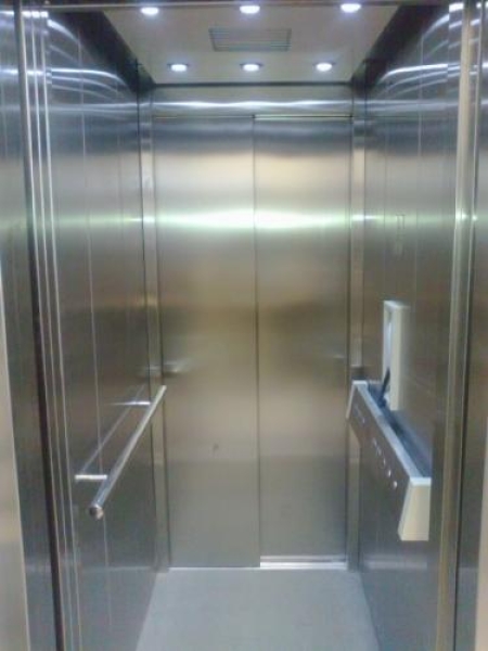 • Cabina em Aço Inox Escovado + Portas AL/AL Automáticas em Inox Escovado